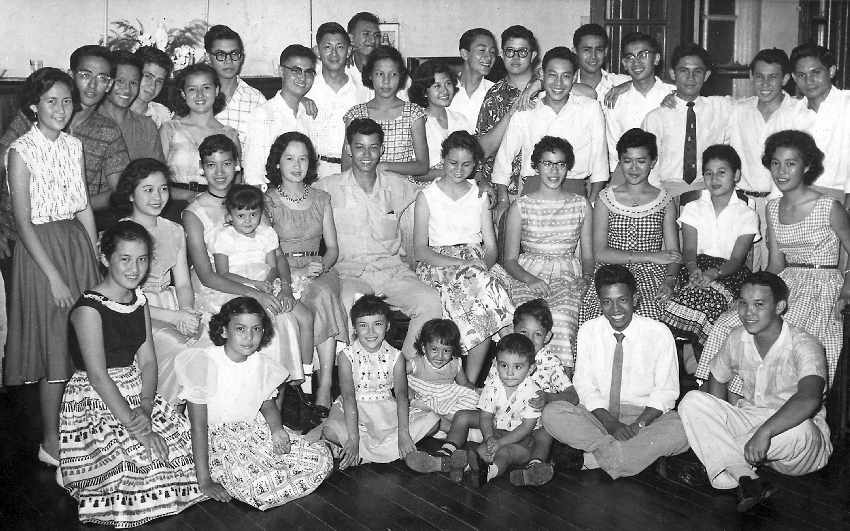 Middle Row Sitting: Annette Carrol, Mella Grout, Antonia Noronha (on lap), Maria Helena da Silva, Carlos Noronha, Maureen Djeng, Shirley Xavier, Marilou Souza, Evelyn Souza, Henrietta "Dinga" Ozorio,