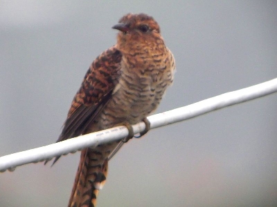 Just like its cousin the European Cuckoo (Cuculus canorus) [whose song is mimicked by a clarinet in Beethoven's 6th Symphony] this cuckoo is a brood parasite, i.e. it does not build its own nest but lays its eggs in the nests of Tailor Birds. Because the entrance to the Tailor Bird's nest is so tiny, it is unlikely that the much larger Cuckoo may actually lay directly into the nest. It is believed that the egg is laid on the ground and then placed into the nest with the bill.